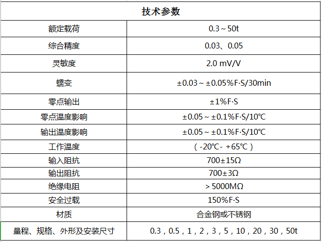 彈性體采用剪切梁,剛性好??箓?cè)向、抗偏載、低高度、高精度。全密封、規(guī)格全。適用于平臺秤、汽車衡、軌道衡及料物位測量與控制。可選擇一體化標準信號輸出,二線制,4~20mA或12~36V輸出。