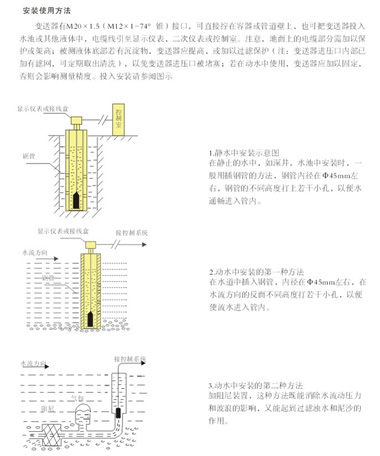 該產(chǎn)品用特制的防水中空電纜使感壓膜片的背壓腔與大氣良好相通,測量液位不受外界大氣壓變化的影響,測量準確,長期穩(wěn)定性好,并具有優(yōu)良的密封及防腐性能,可直接投入水、油等液體中長期使用。PVC材料的外殼及電纜可測量多種防腐蝕性液體。